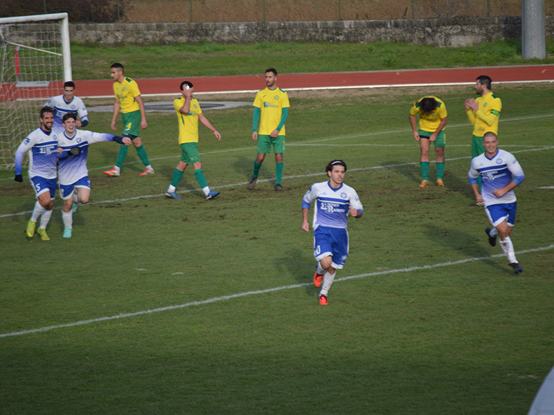 Il Nave Calcio fatica a trovare soluzioni per impensierire la retroguardia bianco blu e le cose si mettono ulteriormente in salita a partire dal 18' della ripresa quando Venturini, già ammonito, ostacola ingenuamente un rinvio di Bertoli in area vedendosi sventolare davanti il secondo giallo e relativo cartellino rosso.